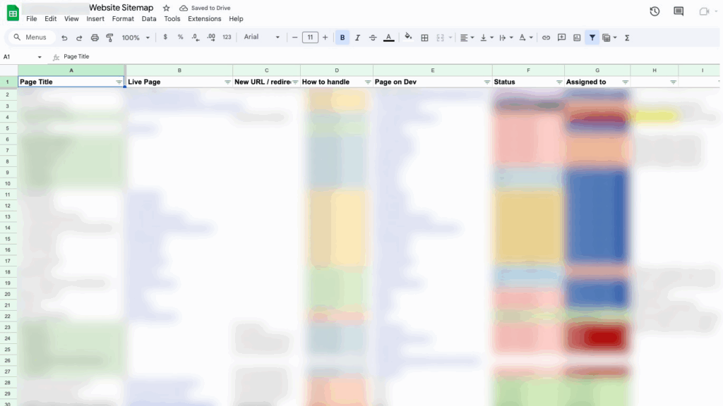 - Crawl your current site before development starts - capture all URLs, titles, and metadata. Google Sheets works. We’ve started using Clickup for this.